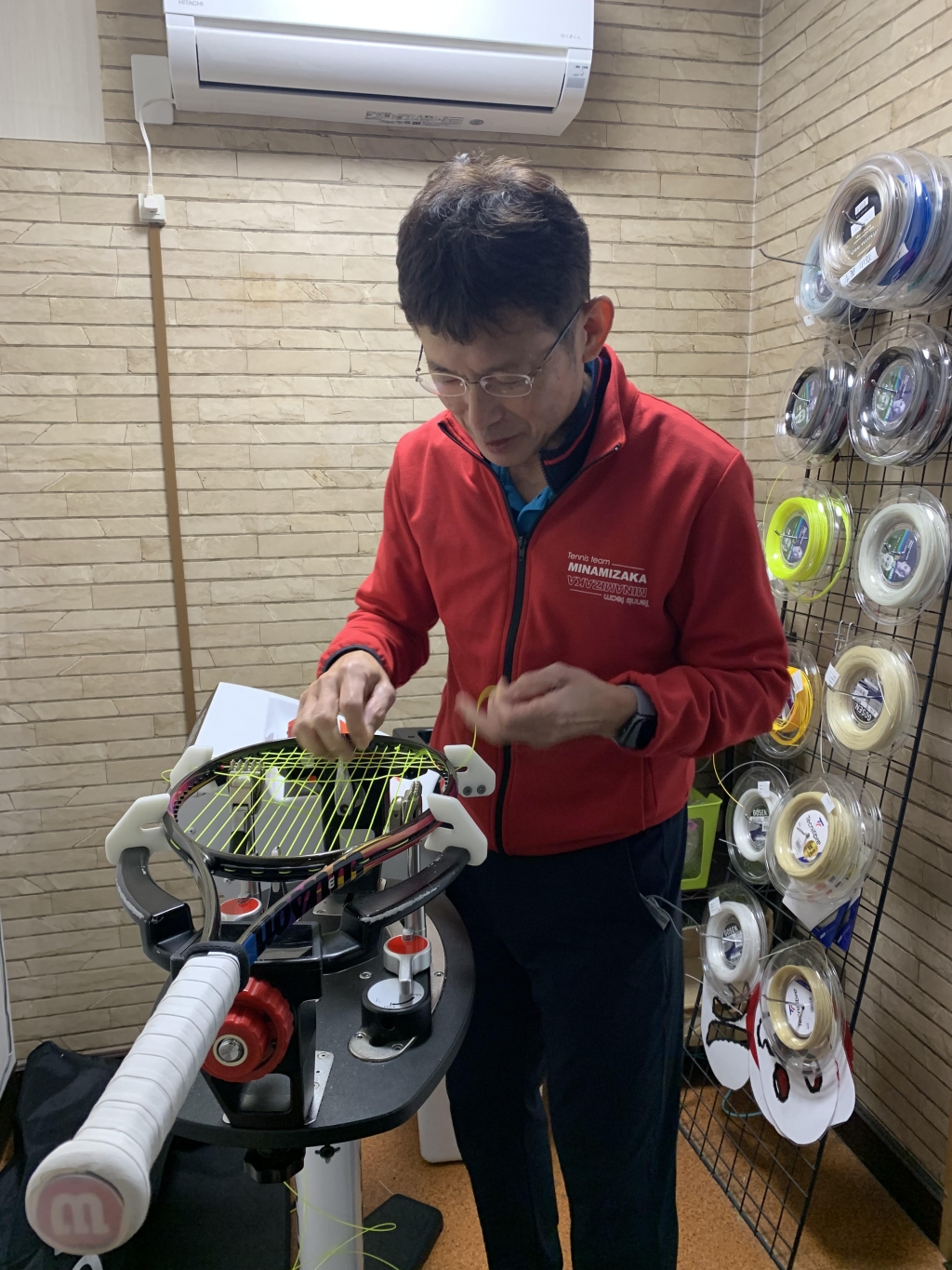 こんな感じでクラブハウスの奥の方で皆様のガットを張らせて頂いています。